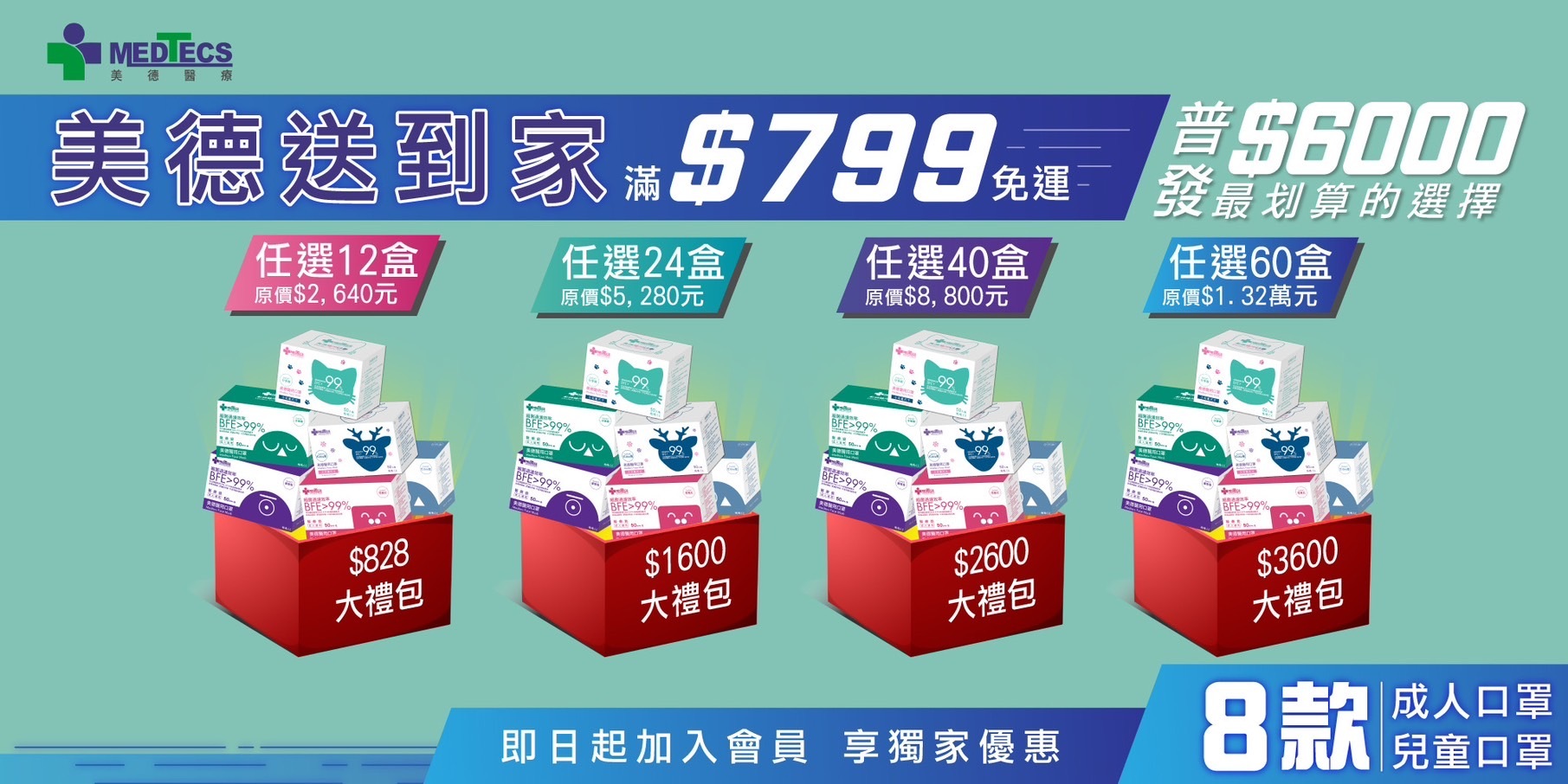 8款熱銷口罩任選,美德送到家免運費