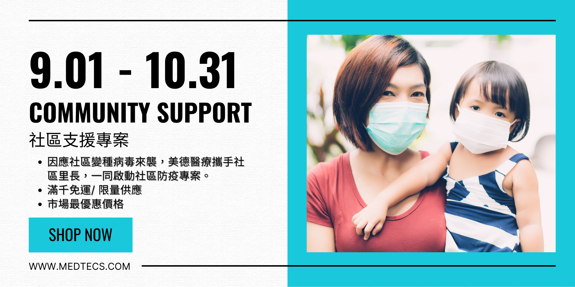 因應本土疫情升溫,各地區域有不少民眾與孩童確診,美德醫療特別供應口罩與消毒相關特惠商品給指定社區里長與民眾。 透過此專案,希望能有效降低民眾染疫狀況,把醫療量能放在中重症以及慢性病患者。