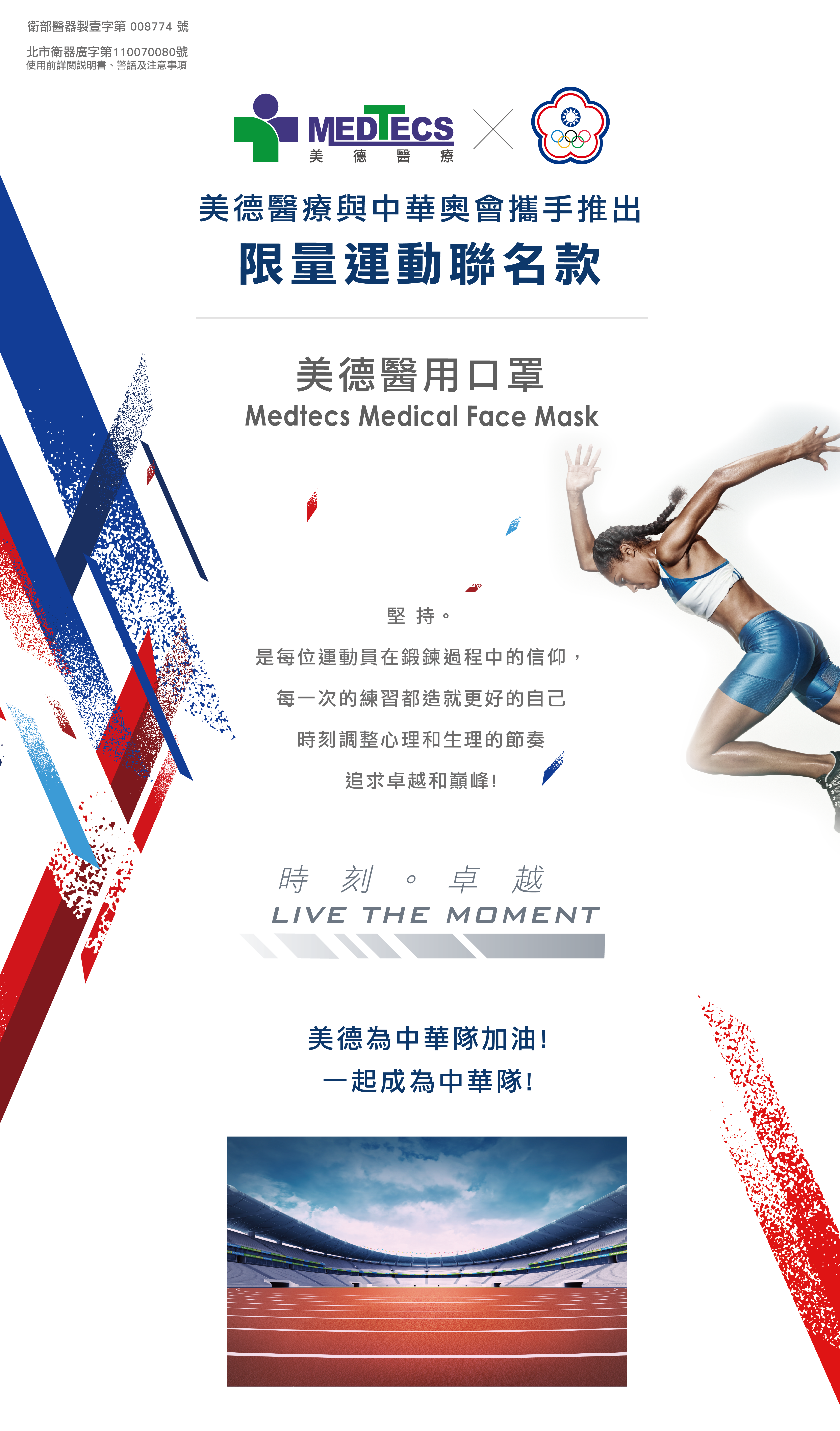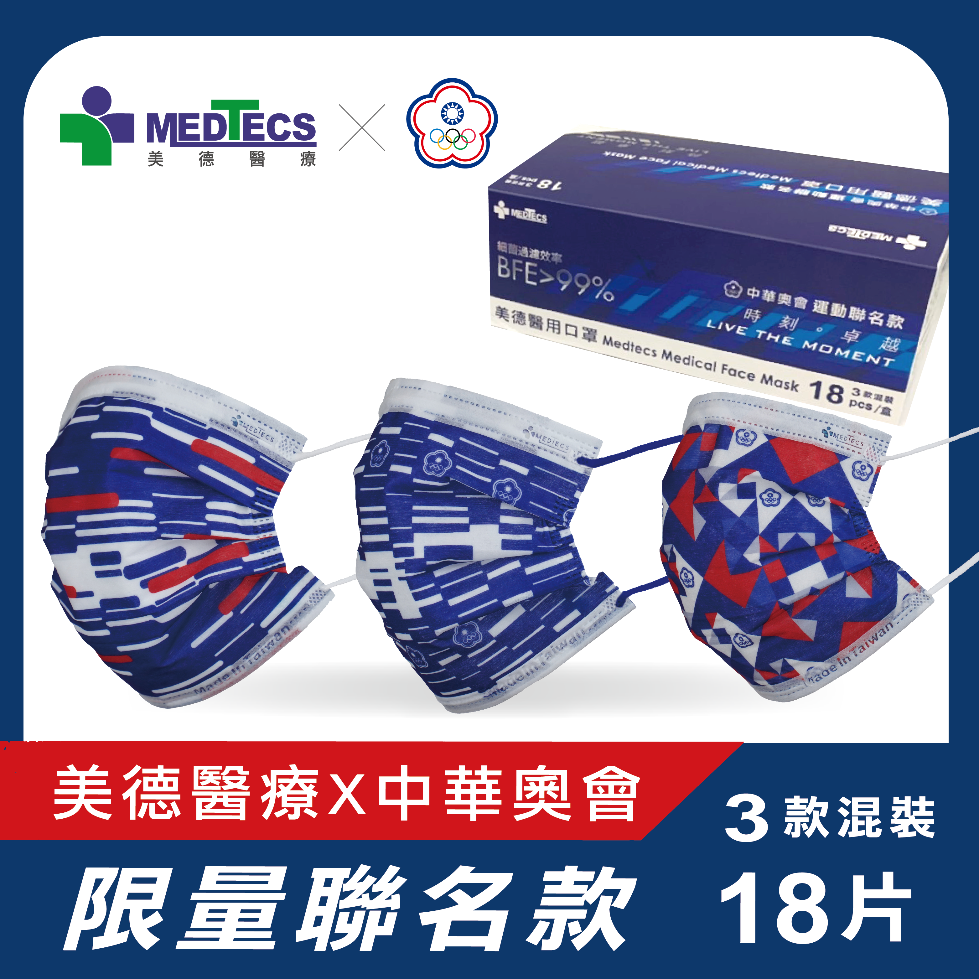 中華奧會唯一授權東奧運會美德聯名醫療口罩菁英款奧運選手指定配戴款榮耀。 讓我們一起為中華隊加油。