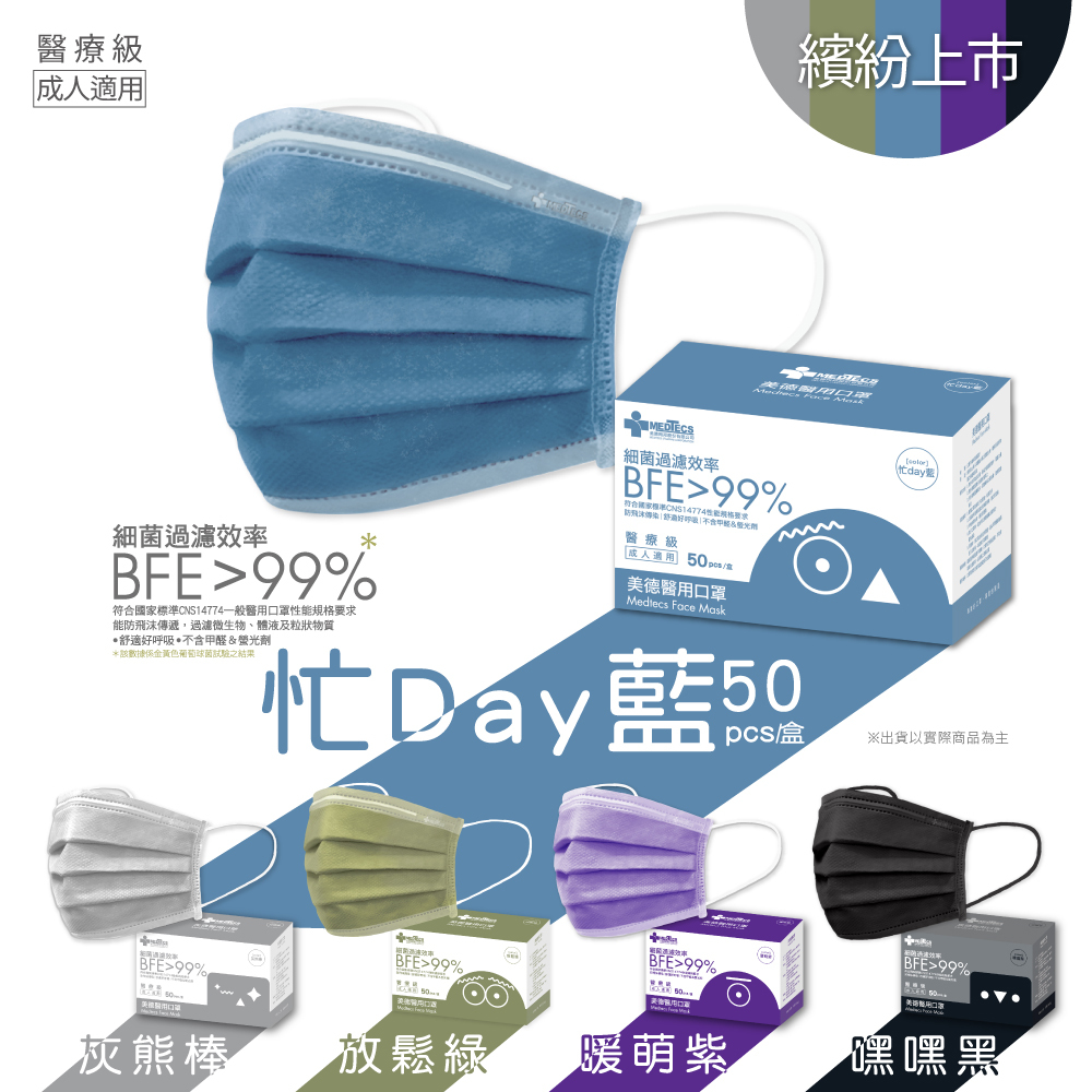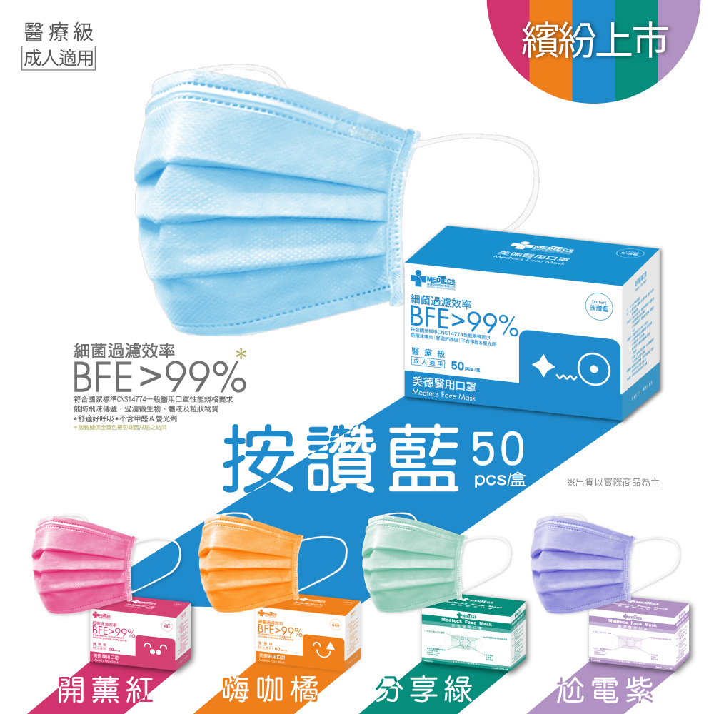 【特別優惠】箱入-美德成人醫用彩色防護口罩 40盒/箱 | 單色箱購