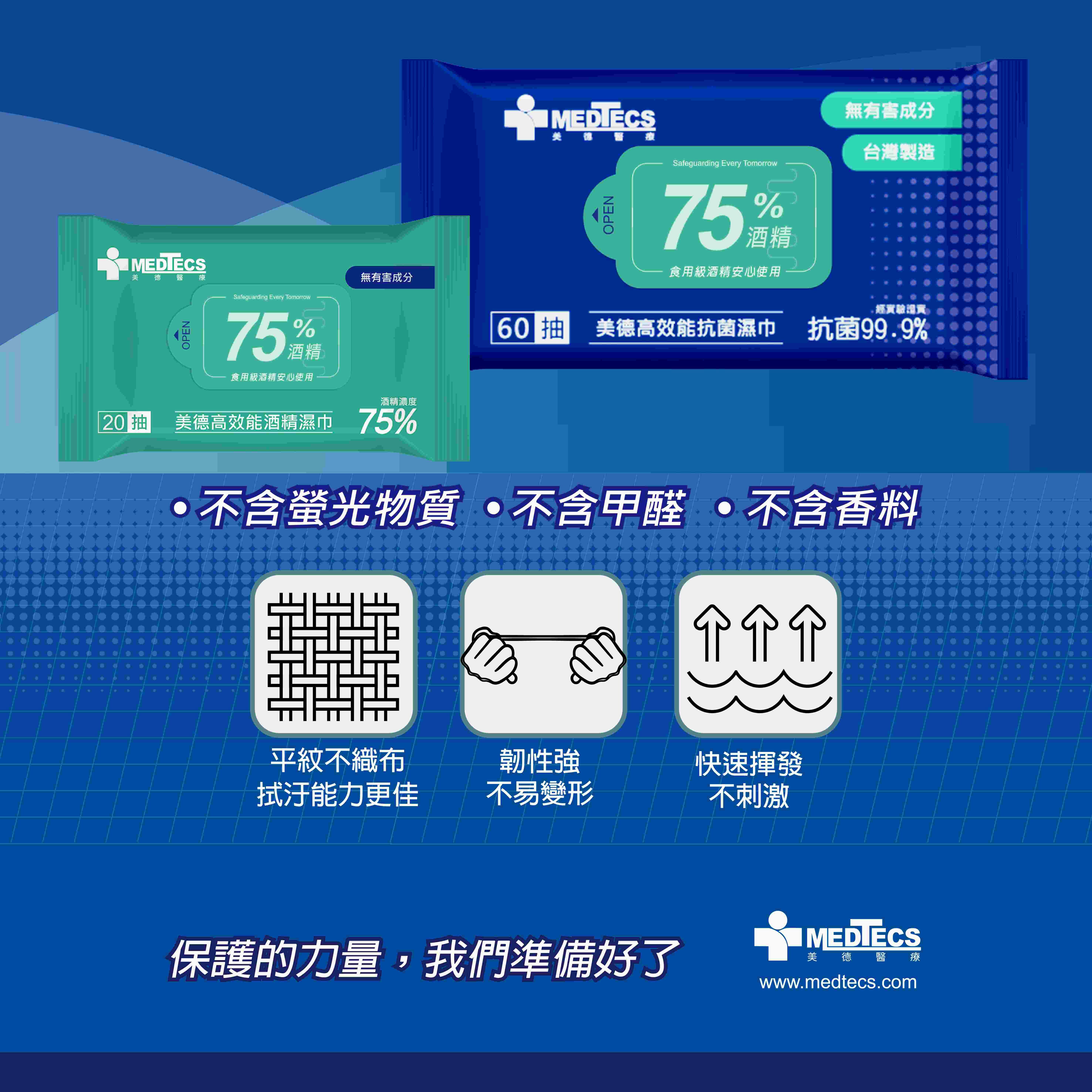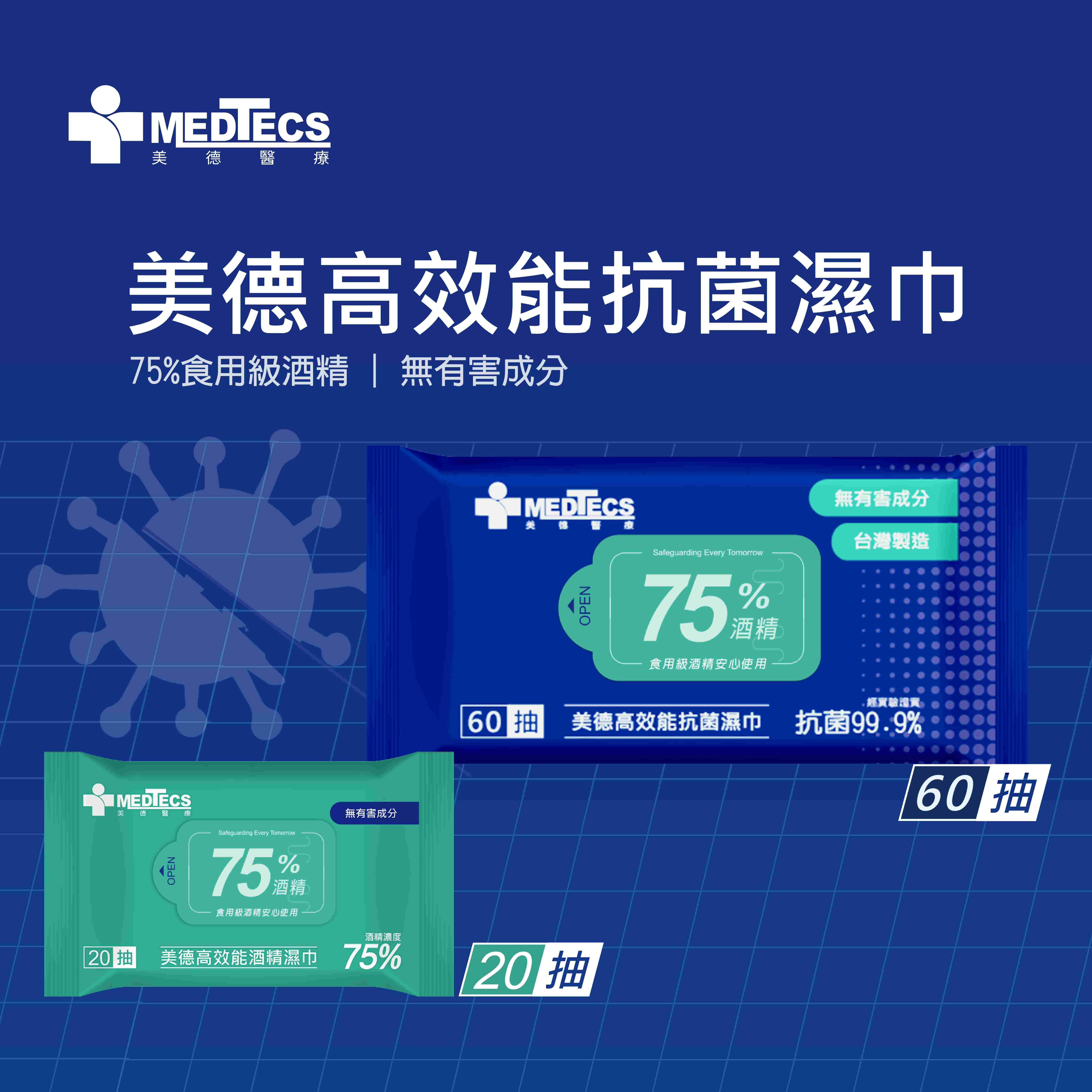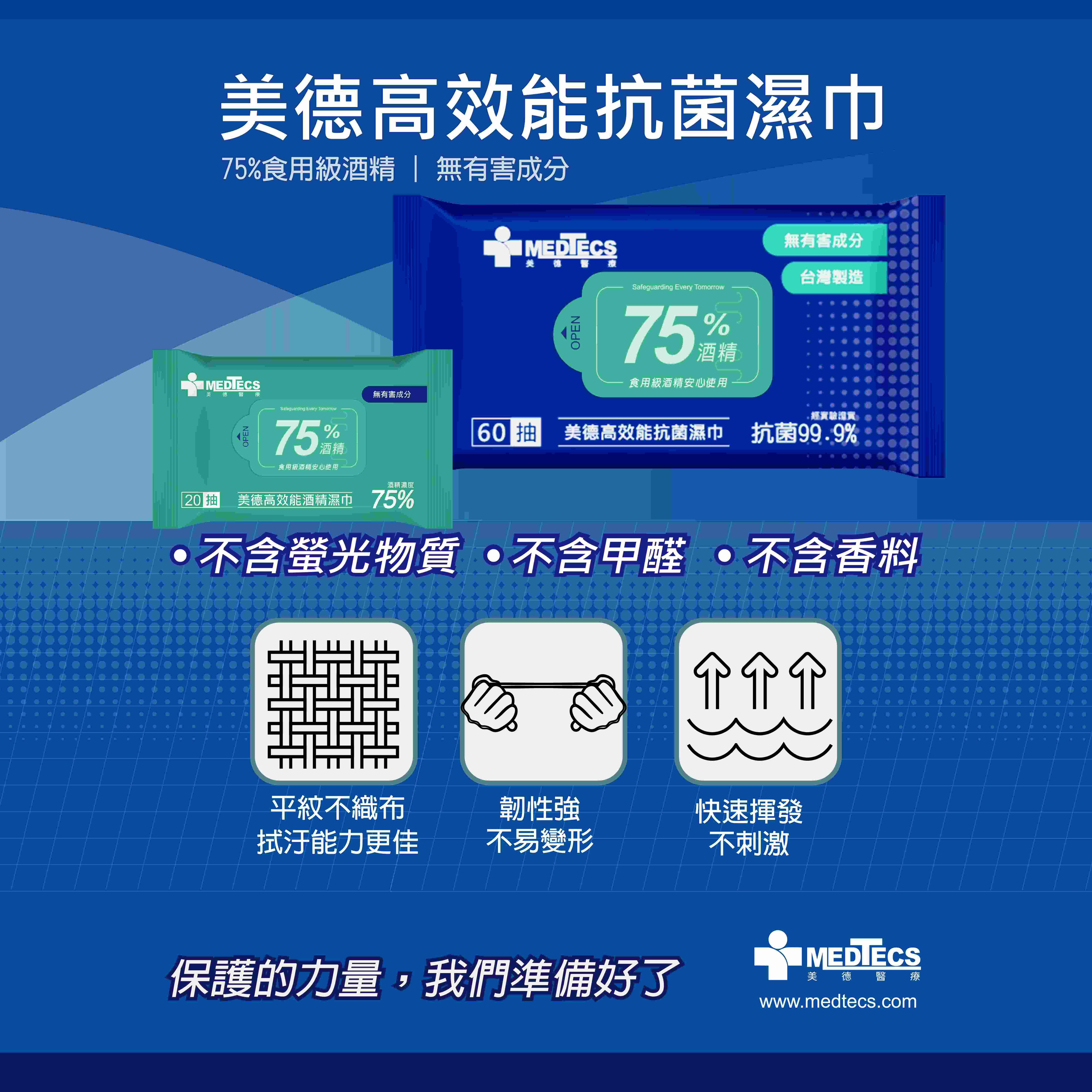 MEDTECS 美德醫療 高效能食用級酒精抗菌濕巾 20抽/60抽 單包入