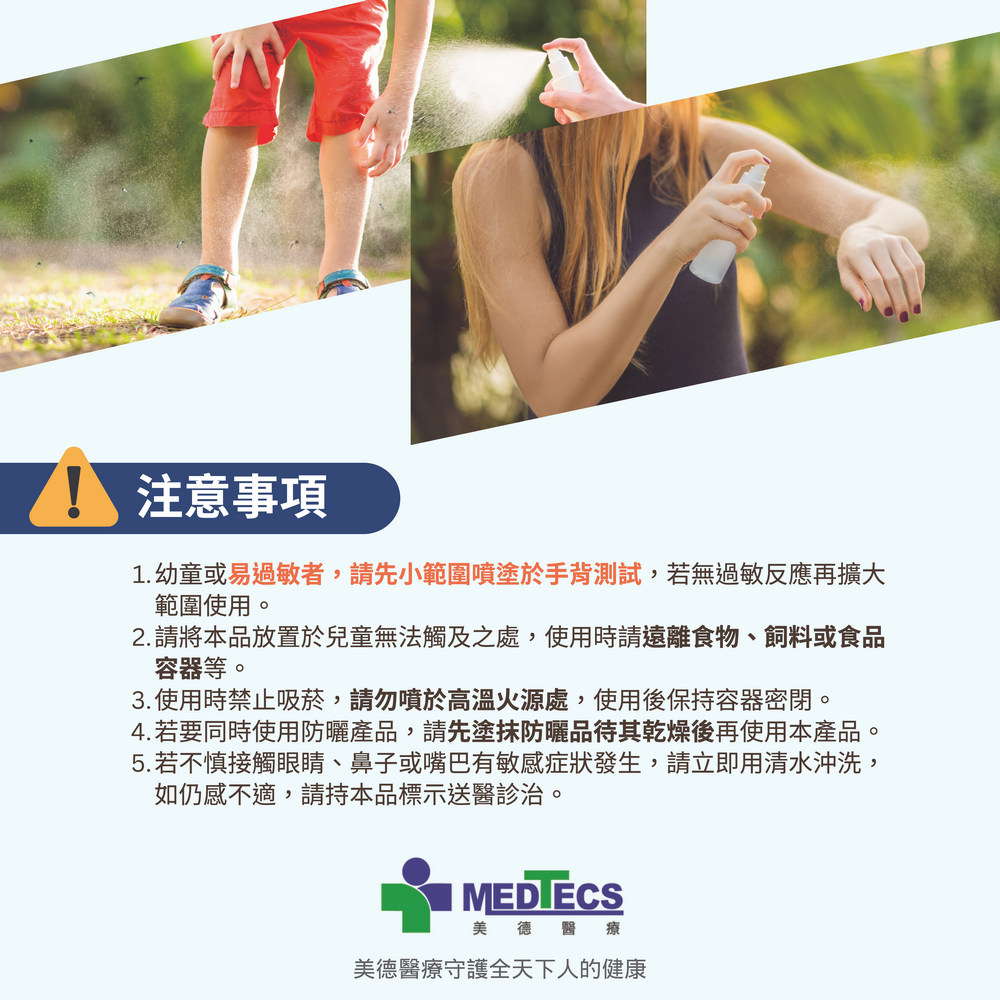 2.幼童或易過敏者,請先小範圍噴塗於手背測試,若無過敏反應再擴大範圍使用。
